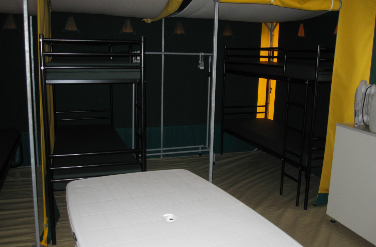 In de grote slaapkamer staat een tweepersoonsbed (2.00 x 1.40 m). In het andere slaapvertrek, dat door middel van een doek in twee delen gescheiden kan worden, staan 2 stapelbedden.